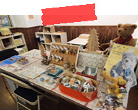 これから始まる本講座のご紹介を兼ねて、ベアの展示&販売・雑貨の販売をさせていただきます。